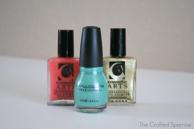 For this project I decided to utilize what supplies I had on hand. Which ended up being nail polish & masking tape. If you are lucky enough to have a Silhouette you can probably make a chevron sticker or template very easy for this project utilizing your machine.