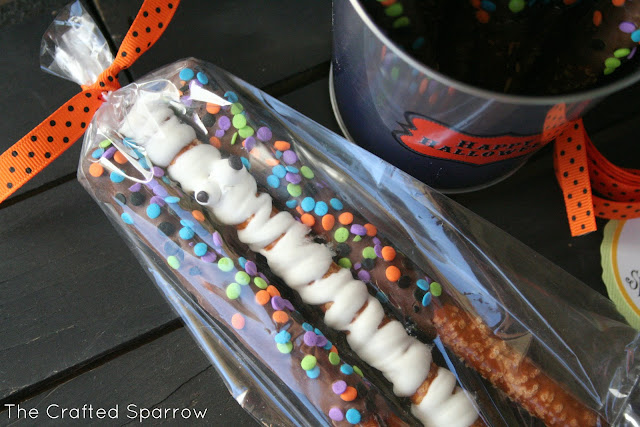 Once all the pretzels are done you can package them up and pass them out. These would be great for a Halloween party too! Hope you enjoy!