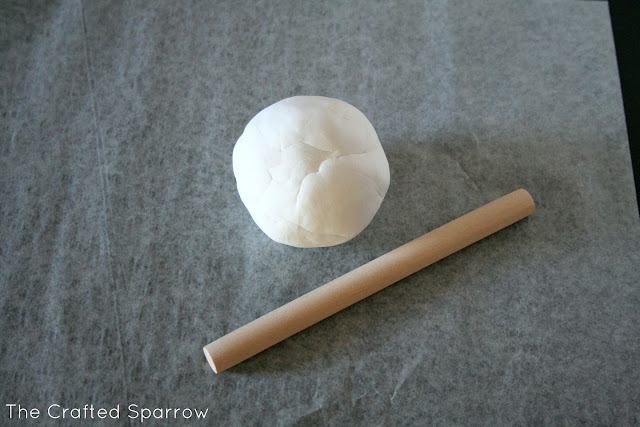So I quickly ordered two kits from Amazon which showed up the next day (love PRIME). We got right to work. The kit is so easy to use and comes with all the supplies you need. It has this amazing marshmallow clay, a rolling pin, 2 different size round cookie cutters, ribbon, and a small item to create the hole for the ribbon.