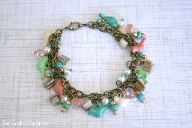 I decided I would make a charm bracelet with the bird charms. I found some other findings and beads in my jewelry supplies and got to work.
