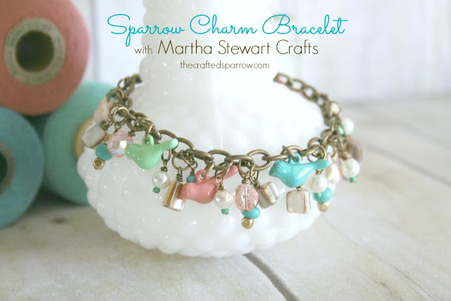 Have you seen the new Martha Stewart Crafts Jewelry line? I have and I’m in love! About a month ago I saw several bloggers receiving boxes full of the new line to play with and create. I’m not going to lie, I was totally jealous. So what’s a girl to do?! Write Martha Stewart Crafts directly of course. I received a quick response saying they’d love to send me something. I was blown away at not only the quick response, but the kindness I was shown by the company. They quickly sent me out a few of the new products to create with. Today I’m sharing the Sparrow Charm Bracelet I created first.