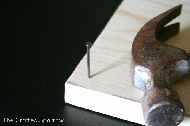 {Tip: Hammer 4 nails to the back of the wood to lift the wood off the counter or table so you can easily paint the sides, remove when it’s dry}