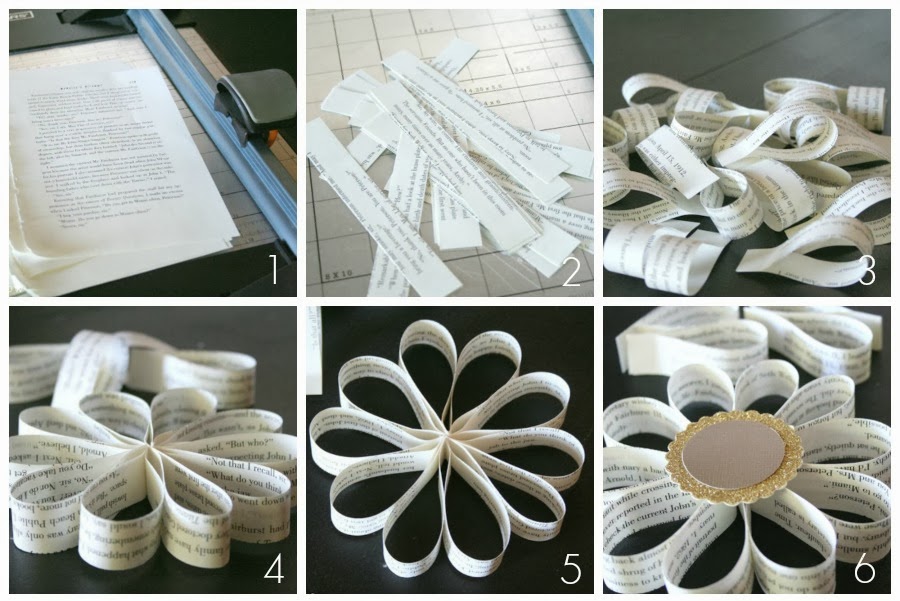 1. Remove book pages from an old book, goodwill or your bookshelf are awesome places to look.