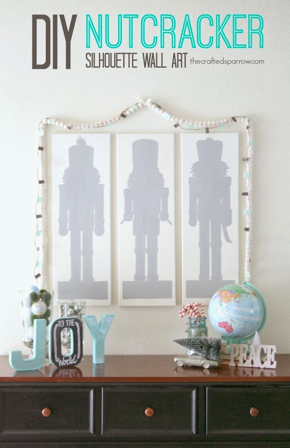 My oldest son loves Nutcrackers, every year he asks for a new one. As much as I would like to give in and buy a new one for him, they really don’t match our Christmas decor and I hesitate. Last year I made a compromised and made this DIY Nutcracker Silhouette Wall Art as a surprise for him. He loved how they turned out, and so did I. They have become a part of our Christmas decor again this year in my entry way.
