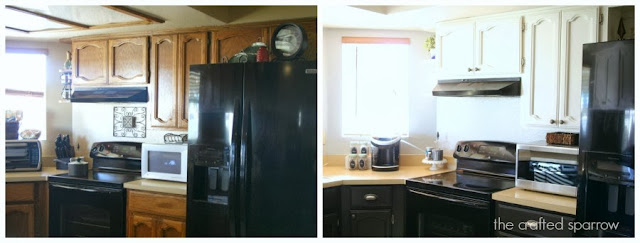 Wow! What a difference it makes with the painted oak cabinets. Love the outcome! I’d say enjoy the two tone for now as it’s so in style. I can only imagine your surprise when taking down the fluorescents to find the area above. Good luck with your future plans – it all takes time.