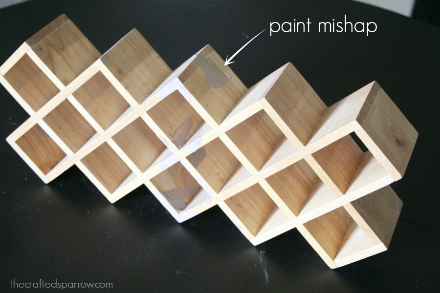 Okay here is the before pic. I paid $3 for this spice rack, and guess what? I came home and googled it. Want to know how much it costs new? Of course you do…$40, go here and see. This particular one I found had some spilled paint, other than that it’s in great shape. Those holes are the perfect size for twine!